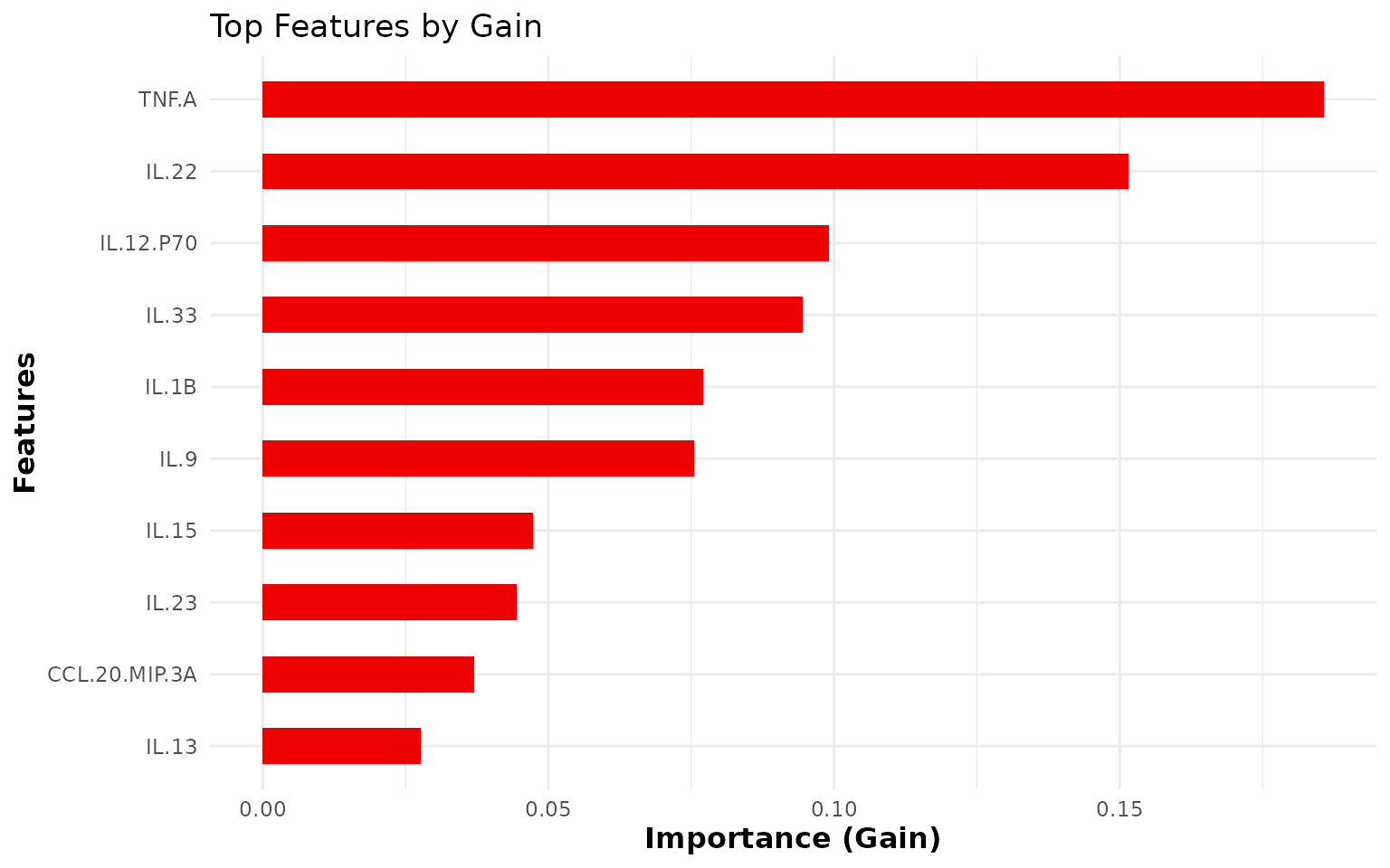 #> 99 99 99Recommended sample size: Functions perform best with at least 10 samples per group. Machine learning functions (Random Forest, XGBoost) require larger sample sizes ( 20 per group) to produce reliable cross-validated performance estimates.