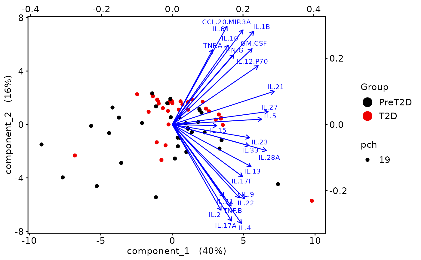 This function performs Principal Component Analysis (PCA) on cytokine data and generates several types of plots, including: