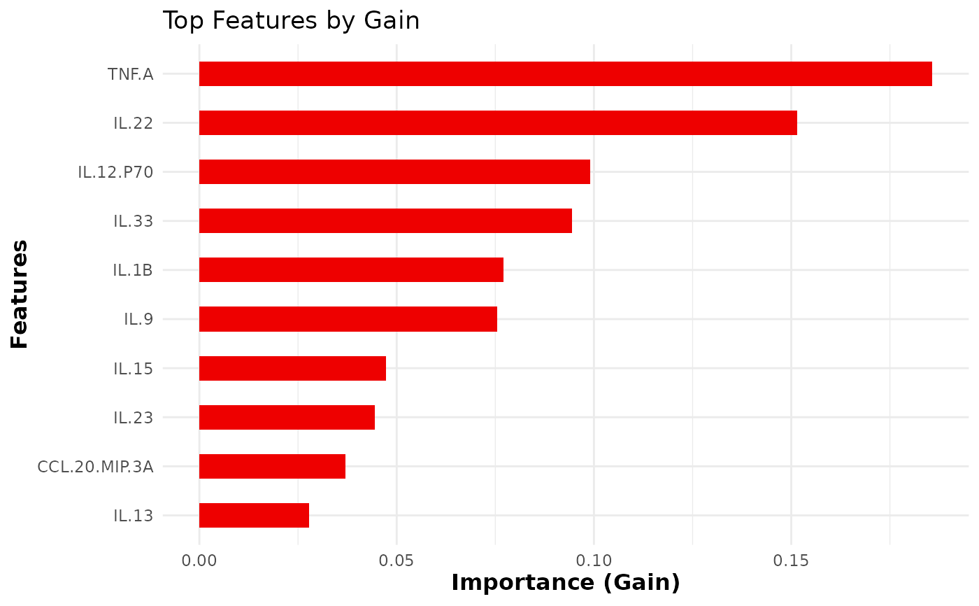 Integer specifying the number of top features to display in the importance plot. Default is 10.